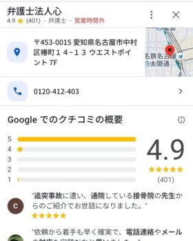 弁護士法人心の本部へのGoogleクチコミ(Googleレビュー)が400件を超えました。